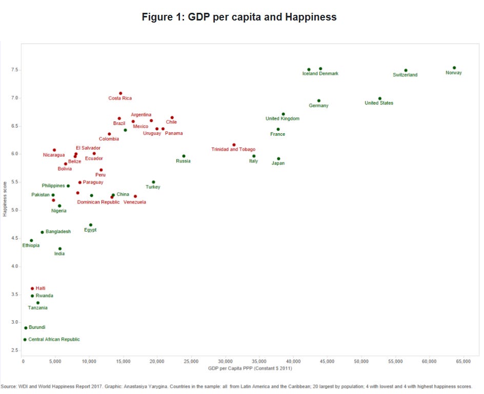 Yet they’re as happy as American counterparts who have small or fractured families with much more money. The Latin Americans recognize the importance of family bonds, social engagement, and tight-knit community.